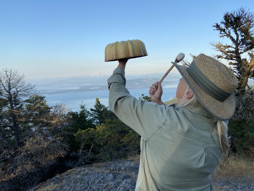 “I began scouting thrift stores, yard sales, and the cabinets of relatives and friends for old Bundt pans and now have an octet. They are among my prized percussion instruments.”