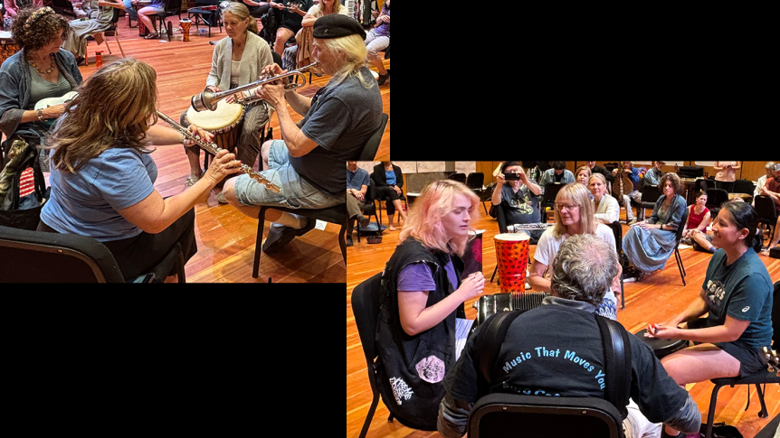 Click on a photo gallery to view photographs from Music for People’s music improvisation workshops. Thanks to all of the photographers who have shared their work and talents with the organization!